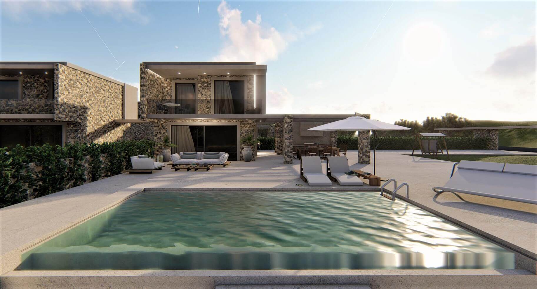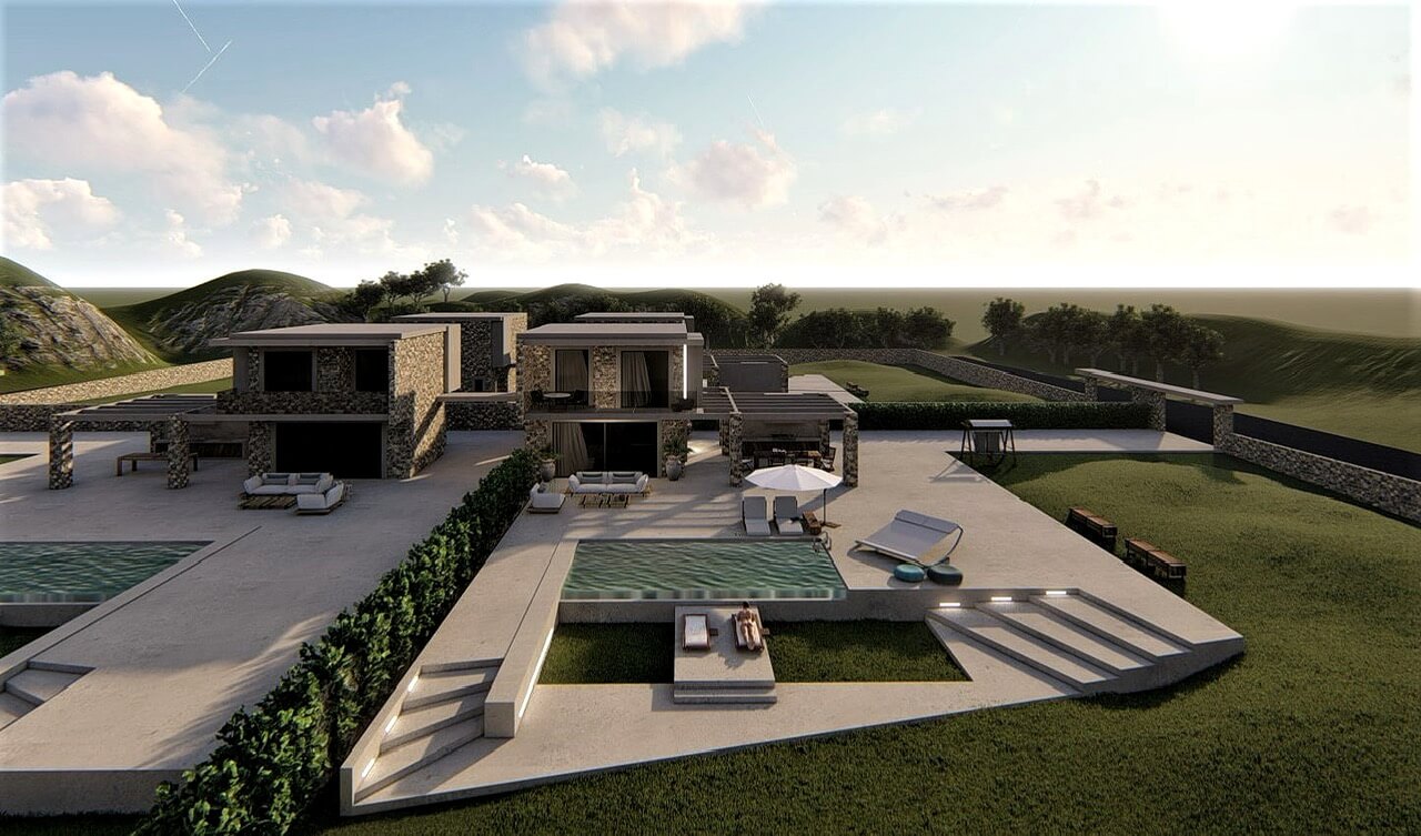 Επίσης, στη περιοχή της Ελάνης, άλλο ένα εξωτικό σημείο της Χαλκιδικής, σε έκταση 5.500 τ.μ. κατασκευή 3 πολυτελών κατοικιών με ατομική πισίνα για κάθε κατοικία 64τ.μ. και 1 στρέμμα κήπο αποκλειστικής χρήσης ανα κατοικία.